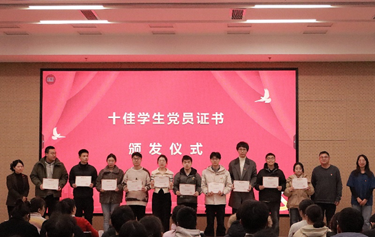 校党委组织部副部长陈洁、院党委书记李荣为十佳学生党员颁发证书