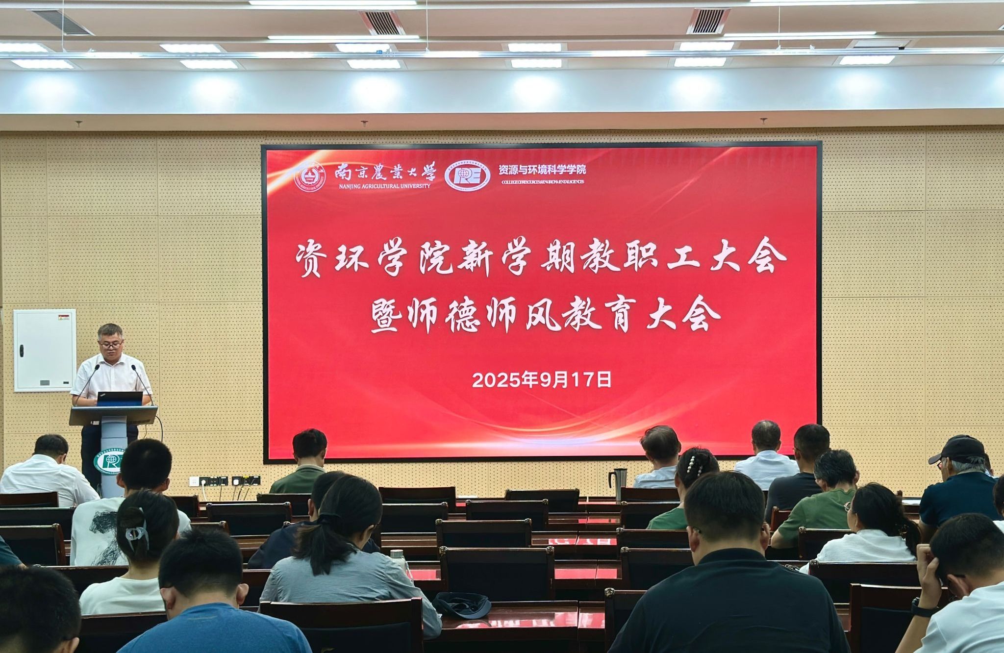 党委书记李荣重点解读学院新修订的教学管理与科研工作相关规定。现场宣读《师德师风倡议书》,号召全体教师弘扬高尚师德,潜心教书育人。