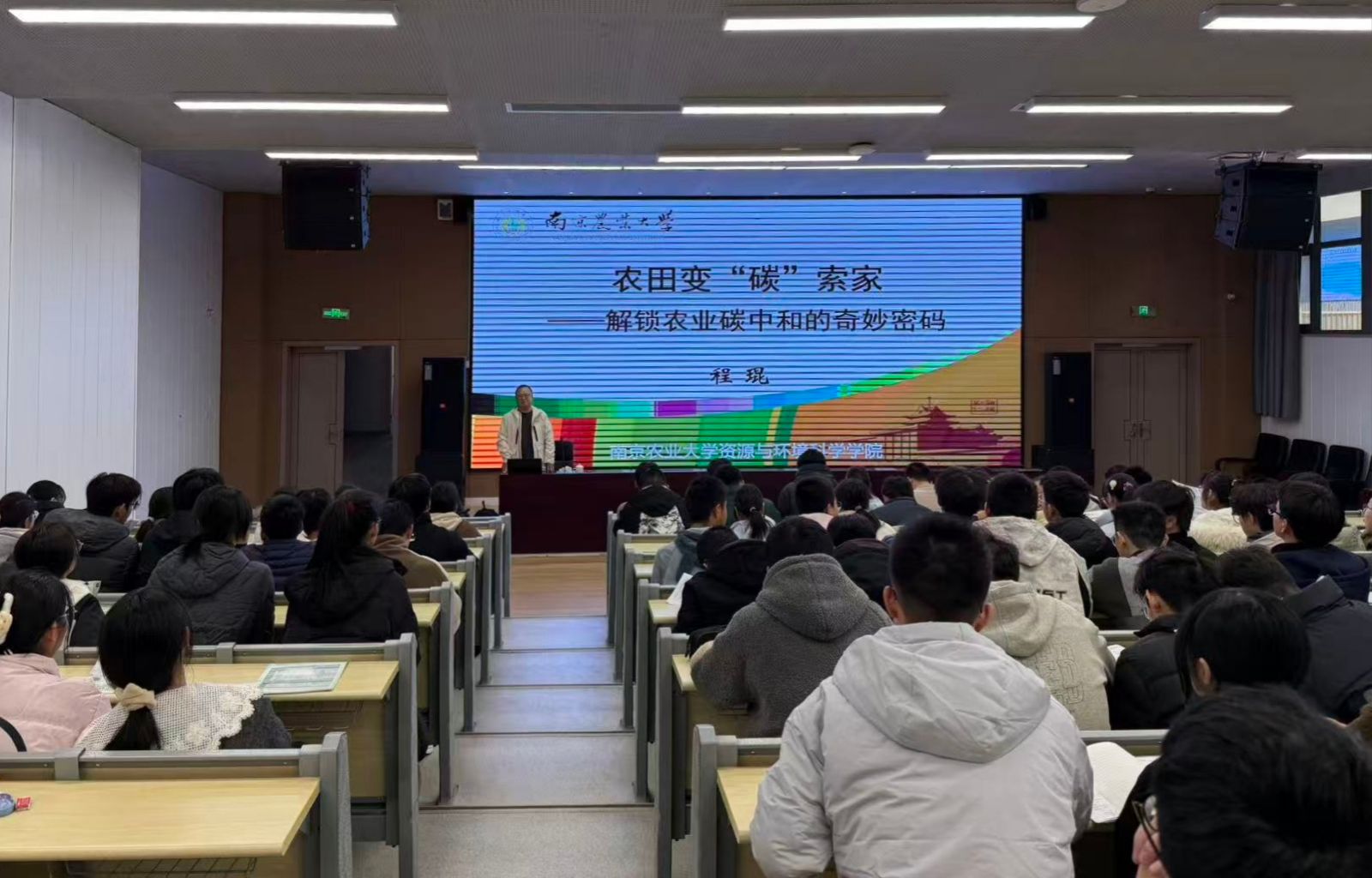 活动期间,招生组先后走访了姜堰中学、靖江高级中学2所江苏省四星级高中,与高中领导、教师开展座谈交流会;孙笑逸向两所中学学生介绍学校学科优势、人才培养、校园文化、就业情况;程琨以《农田变“碳”索家——解锁农业碳中和的奇妙密码》为题向两所中学学生作科普讲座。