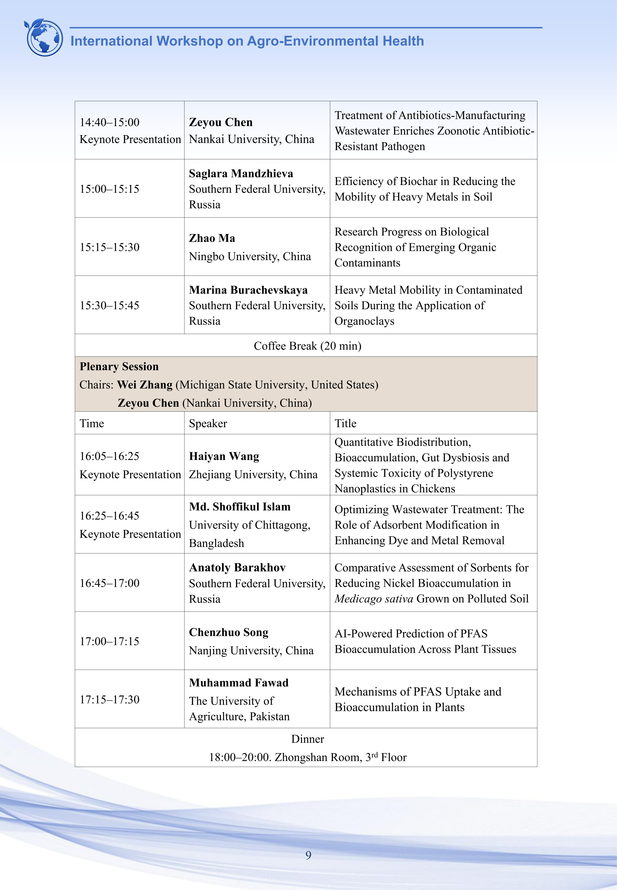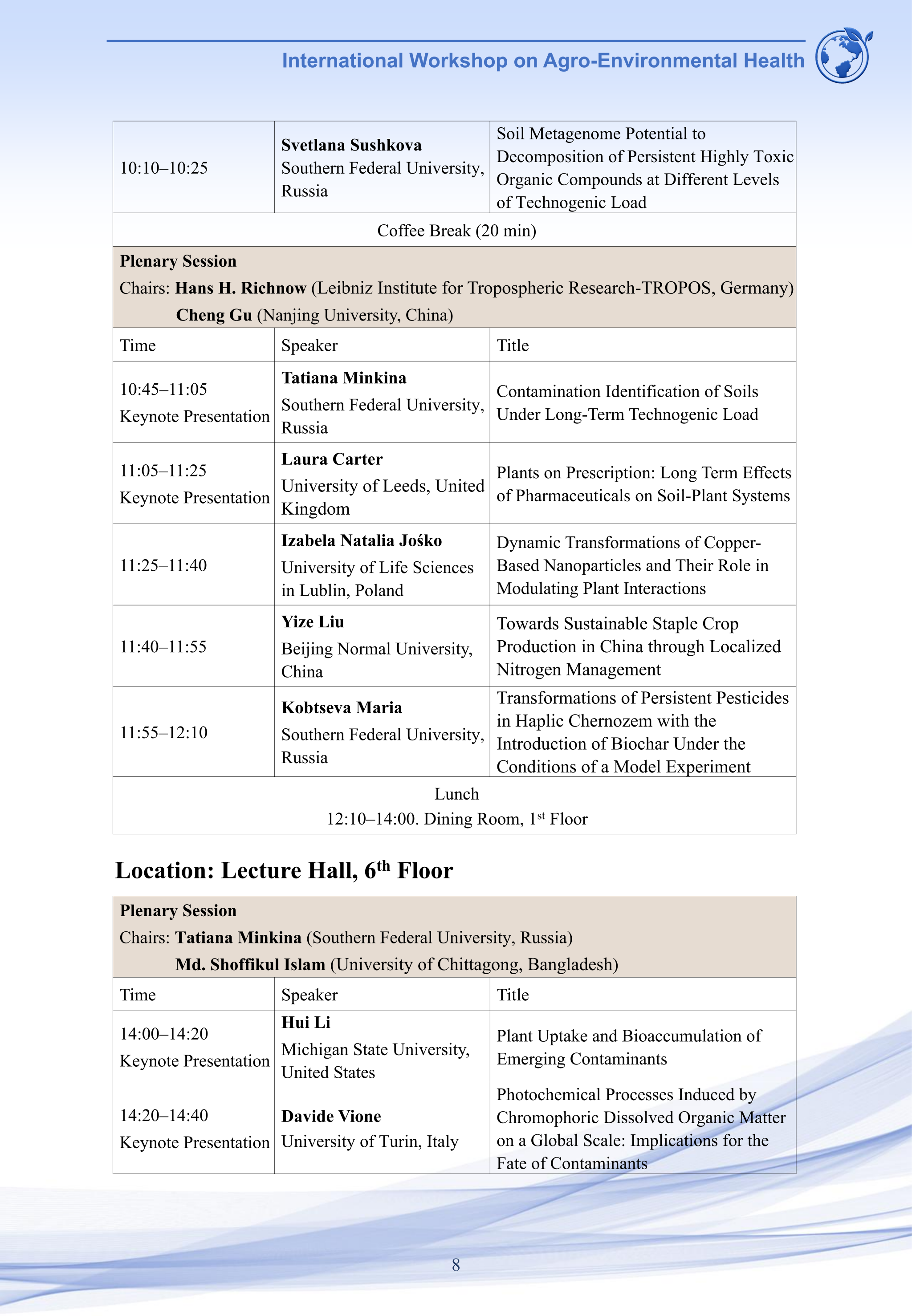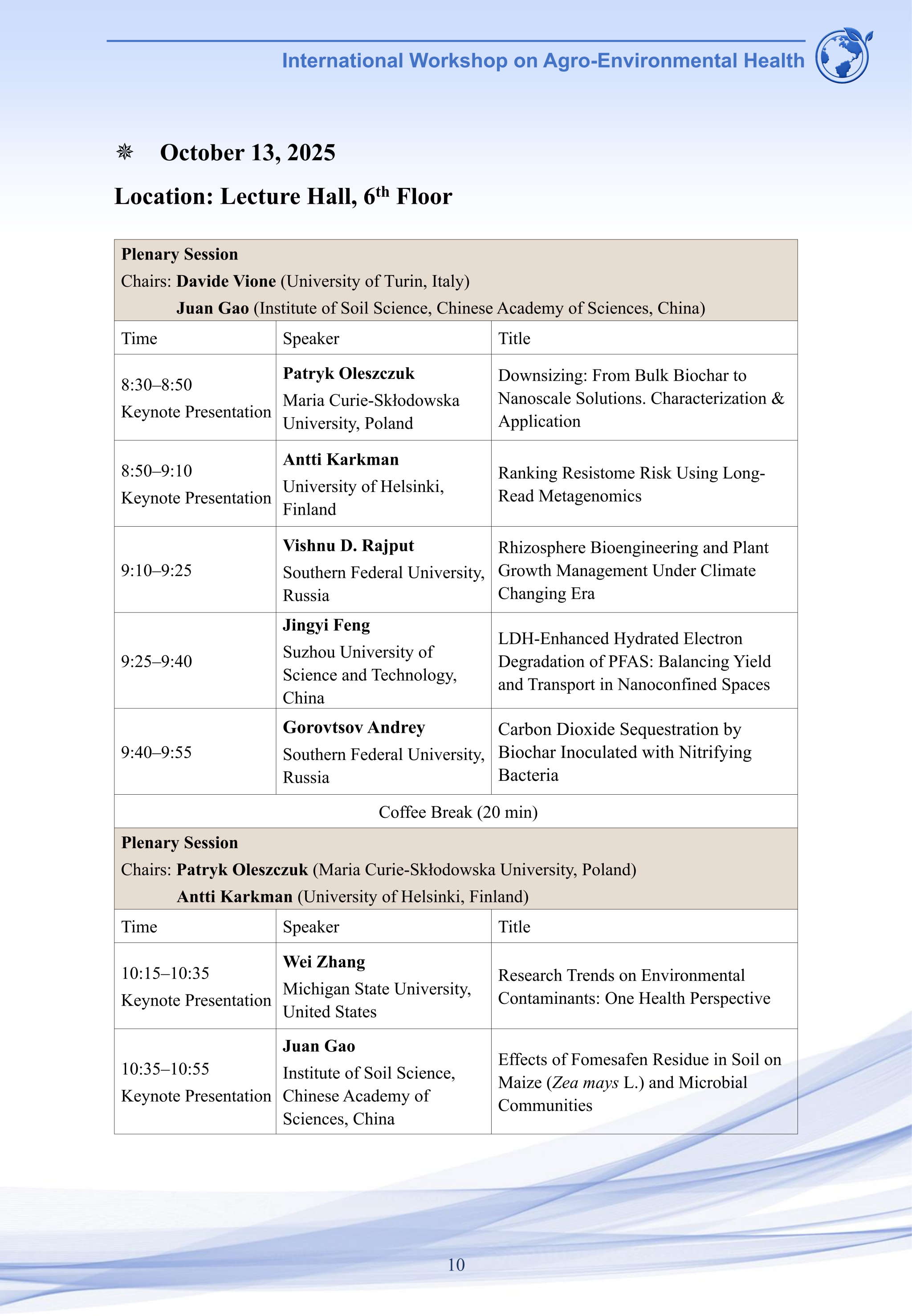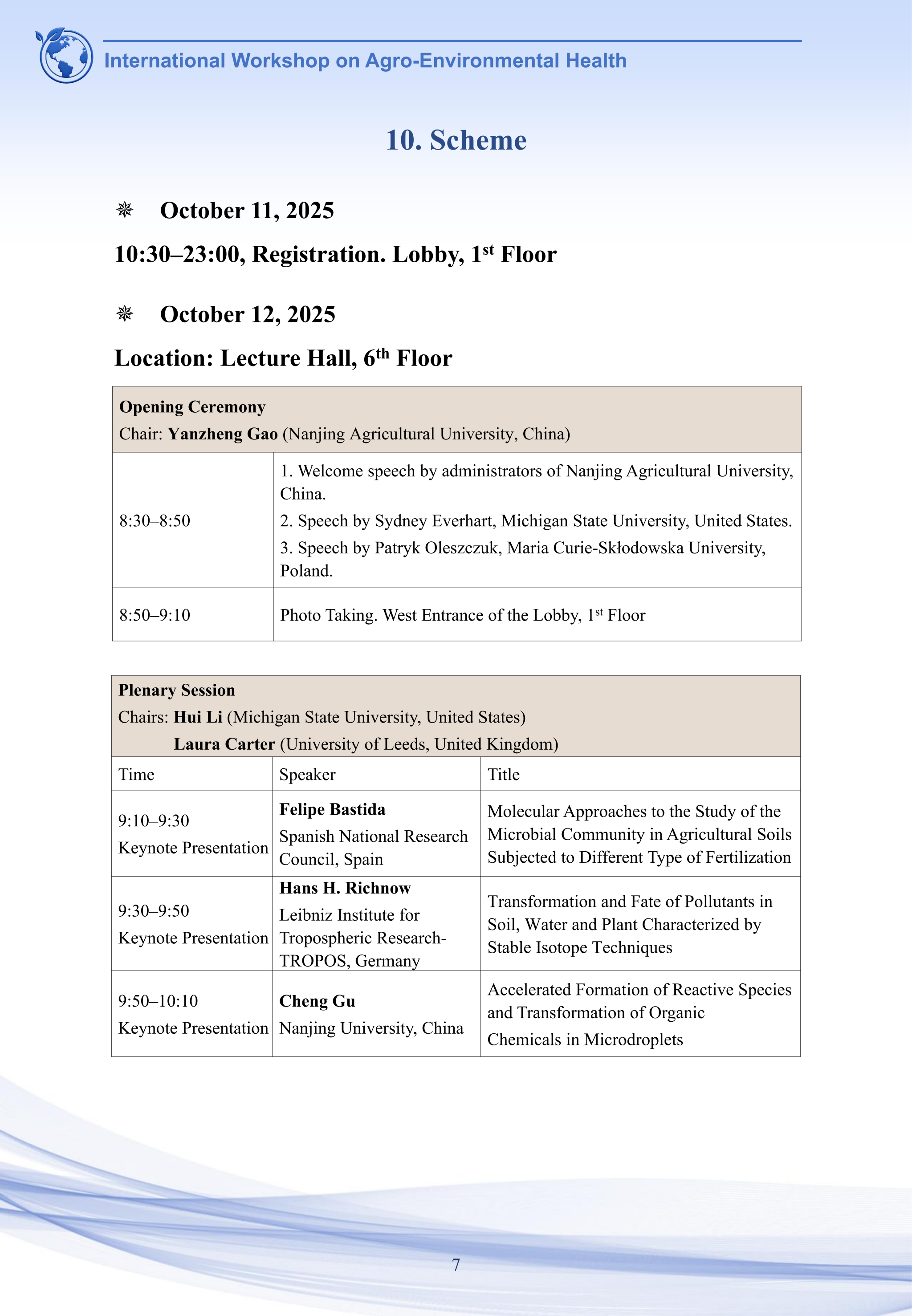 2025农业环境健康国际学术研讨会将于2025年10月11-14日在江苏省南京市南京农业大学学术交流中心(翰苑宾馆)召开,欢迎感兴趣的老师和学生参会交流。会议议程如下: