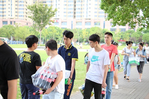早在几天前,团委学生会的成员和各班团务助理就已在紧锣密鼓地筹划为正在军训的新生送水的活动,协调送水时间,购水,搬运等各项工作。为避免影响新生训练进程,送水活动时间反复调整,但大家始终积极地参与其中,希望能为新生带来一丝温暖。宣传部部长乔娅说道,“新生们灿烂的笑容是对此次送水工作最大的回报!”
