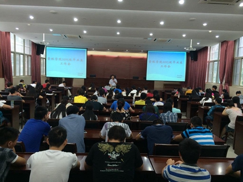 党委书记李辉信教授,院长徐国华教授,党委副书记崔春红老师,院团委书记万小羽老师,院团委副书记李长钦老师及2015届毕业生参加了此次动员会,会议由崔春红主持。