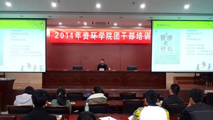 团干培训第二讲在教四楼报告厅举行。南京农业大学团委实践部部长熊富强老师从管理学的概念及相关理论着手,结合典型案例,深入浅出讲解管理学的定义、分类等基础理论,重点阐述管理方法在学生干部团队中的应用问题,特别是结合自己的人生经历和工作经验,介绍了一些管理方法与技巧。