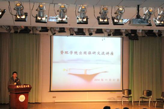 首先讲话的是生态111的李强同学,她被保研至山东大学。她向大家详细地介绍了“保研申请条件”、“综合成绩计算”、“综合素质能力”以及“2015年免试推荐”四个保研相关知识。在浅谈了个人经历及感悟之后,她用一句“不患无位,患所以立”告诉大家:只要我们变成了人才我们就能找到属于自己的位置。最后她将“锦上添花”四个字送给现场观众,希望大家不是抹布,也不要从锦变成抹布,如果是锦就要懂得如何往上添花。