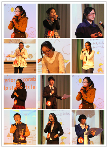 比赛分为主题演讲,即兴演讲,个人才艺展示和评委提问四个环节。在主题演讲中,选手们或激情澎湃,或娓娓道来,针对大学教育,网络影响,成功方法等热点问题发表自己的观点,特别是结合自己学习、生活、工作中的实际问题谈论切身体会,引发了评委老师与观众的广泛共鸣。即兴演讲和评委提问环节考察的是选手们的临场应变能力,选手随机选题和评委随机进行提问,选手们现场一一作答,其中评委幽默的问题和选手机智的作答不时博得观众们的阵阵掌声。在个人才艺的环节,选手们使尽浑身解数,或魔术或唱歌,展示当代大学生多姿风采。最终,来自资环131的11号选手孙光稷凭其流利的演讲,幽默的回答和一首浪漫的英文歌赢得了本次比赛的冠军。