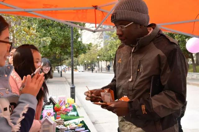 、外语学院、动医学院、金融学院的志愿者们进行了连续三天的义卖。即使天气寒冷,活动进行过程中仍然得到了很多同学的关注和支持。来自环科的潘同学购买了书签,他说:“买点礼物送给好朋友,即奉献了爱心又维持了感情,何乐而不为呢?而且这个书签挺好看的。”一位来自苏丹的留学生看到这个活动非常开心也积极的参与了进来,