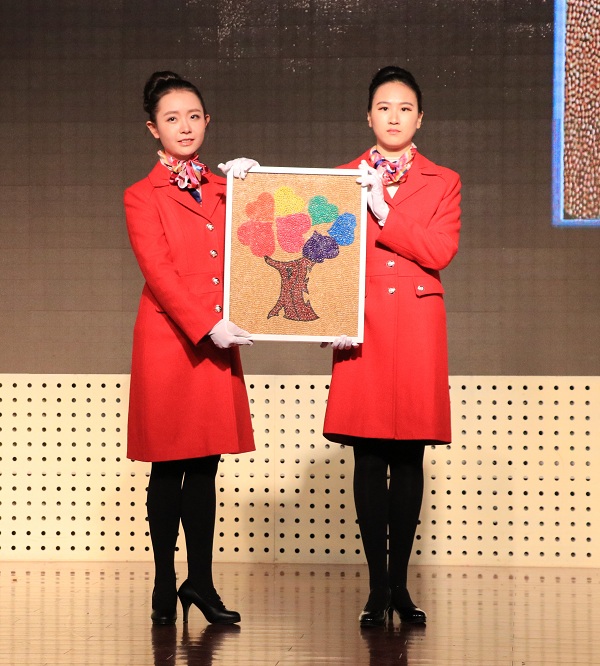 的拍品是以一棵蓬勃生长的大树为主体的豆画,RE两个字母形似树干,意为resource(资源)和environment(环境),象征着万博体育