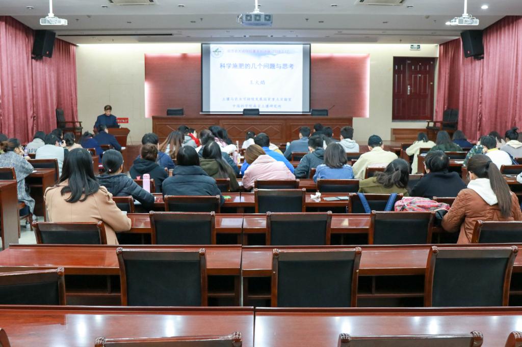 首先为同学们带来讲座的是土壤研究所的王火焰研究员,他以“科学施肥的几个问题及思考”为主题,提出“化肥的负面作用、理想的施肥目标,未来如何实现科学施肥?”三个问题,通过各种数据和详细的计算一一为同学们进行解答。同时化肥对人类有着巨大的贡献,当前公认的化肥对粮食产量的贡献率在55%以上,化肥能提供的矿质养分是植物生长的必需品。未来要想实现科学施肥,就要有适宜的肥料种类、适宜的肥料用量、适宜的施肥时间和适宜的施肥位置。王研究员用详细的讲解和实验的图片为大家带来了一次精彩的报告。