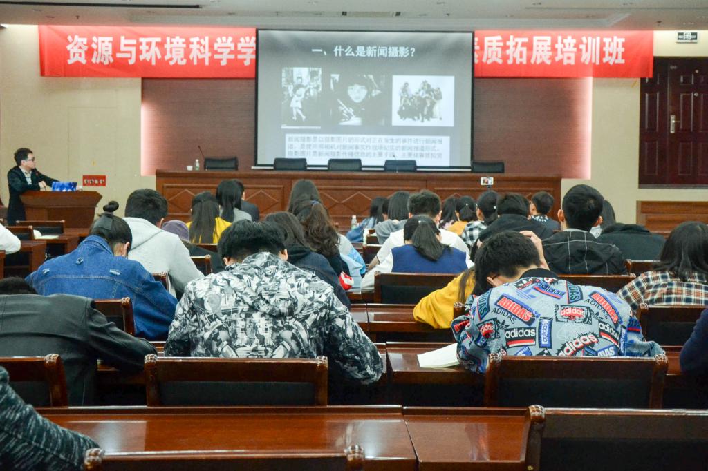 2018年学生干部素质拓展活动开班典礼于资环楼一楼报告厅举行。本次开班典礼邀请了新校区建设办公室李长钦老师和校党委办公室朱珠老师分别作了主题为“新闻摄影、拍摄技巧以及公众号的运营”和“学生干部公文写作与实践”专题讲座。开班典礼由万博体育