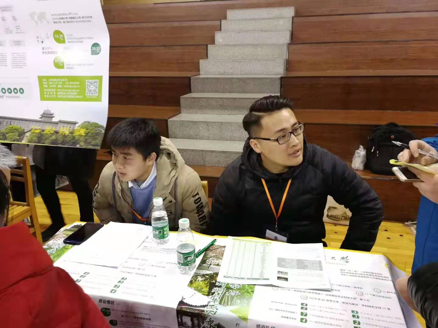 3月2日,2019年高水平大学走进江苏优质高中“双高对接会”于南京市一中举行,万博体育 本科生辅导员郑冬冬、本科生兼职辅导员赵建京作为我校南京招生宣传小组参加本次活动。
